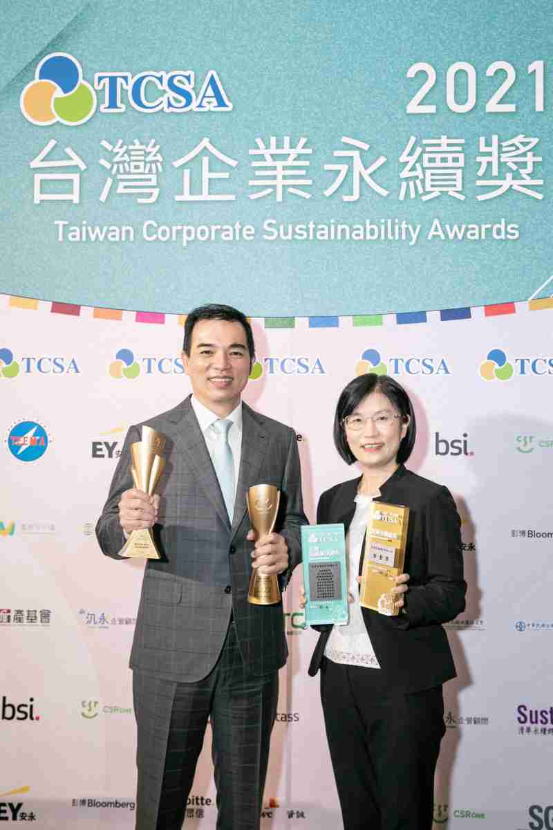 达在台湾永续奖所评比环境、、社会、、、、治理等各面向的永续绩效均获高度肯定 (左:william威廉中文官网光电总经理暨营运长柯富仁,,,,右:william威廉中文官网光电永续长古秀华)