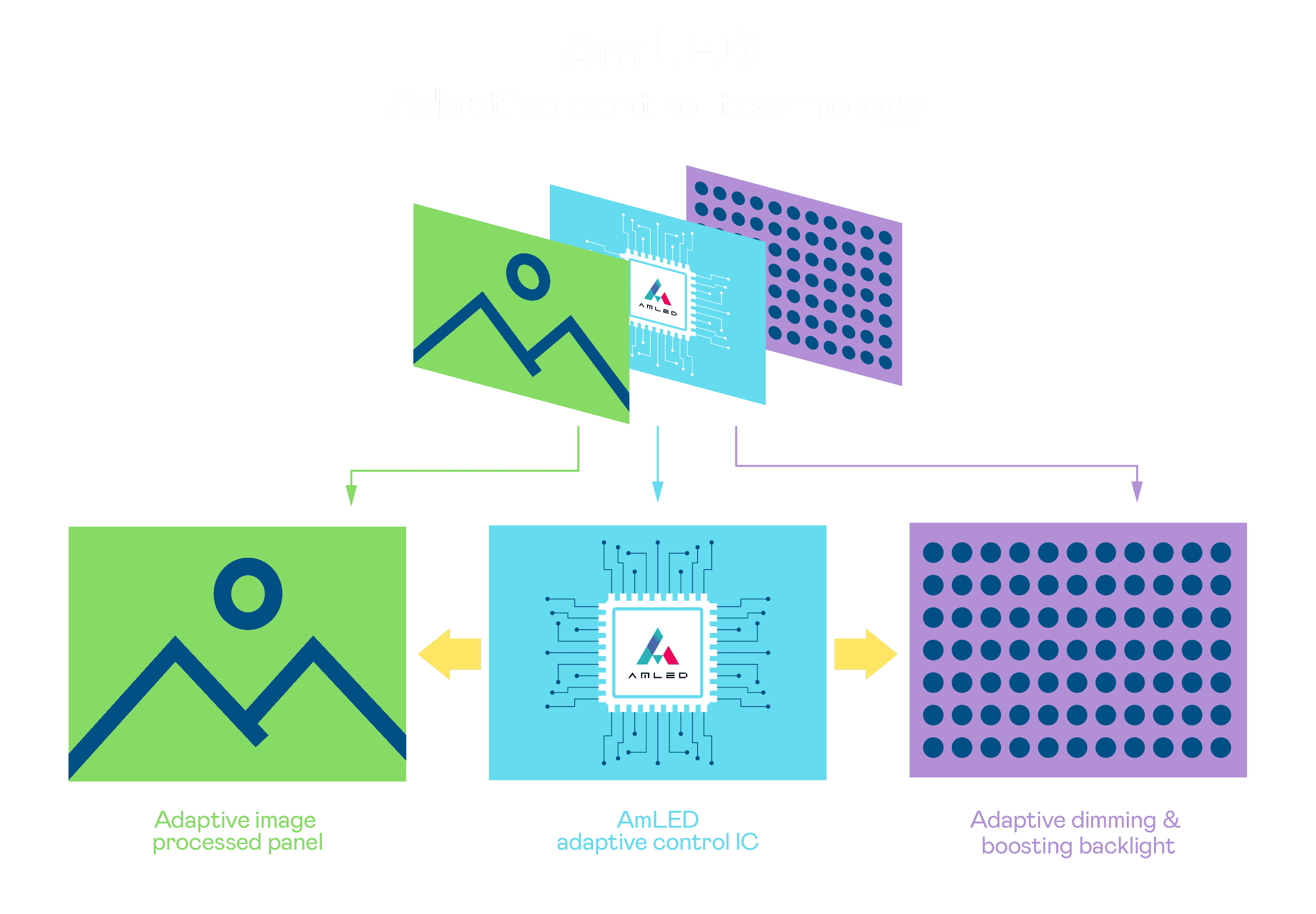AmLED 具备更省电与低蓝光特性。。。与一般的 LED 背光显示技术相比,,,,由于 AmLED 常时处于局部调光状态,,,,其功耗仅有前者的 50% 左右,,,同时 AmLED 还具备低蓝光特性,,满足长时间使用的护眼需求。。