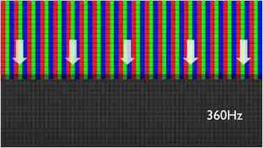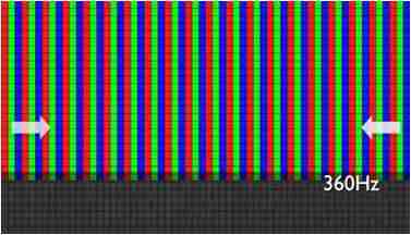 传统液晶驱动是从左到右单向进行,,在画面更新速度愈来越愈快的情况下,,,,位于驱动线路末端的右下角区域,,,,画素的闸极来不及在短时间内获得足够电压,,,,无法显示出正确的颜色资讯。。。。 |
