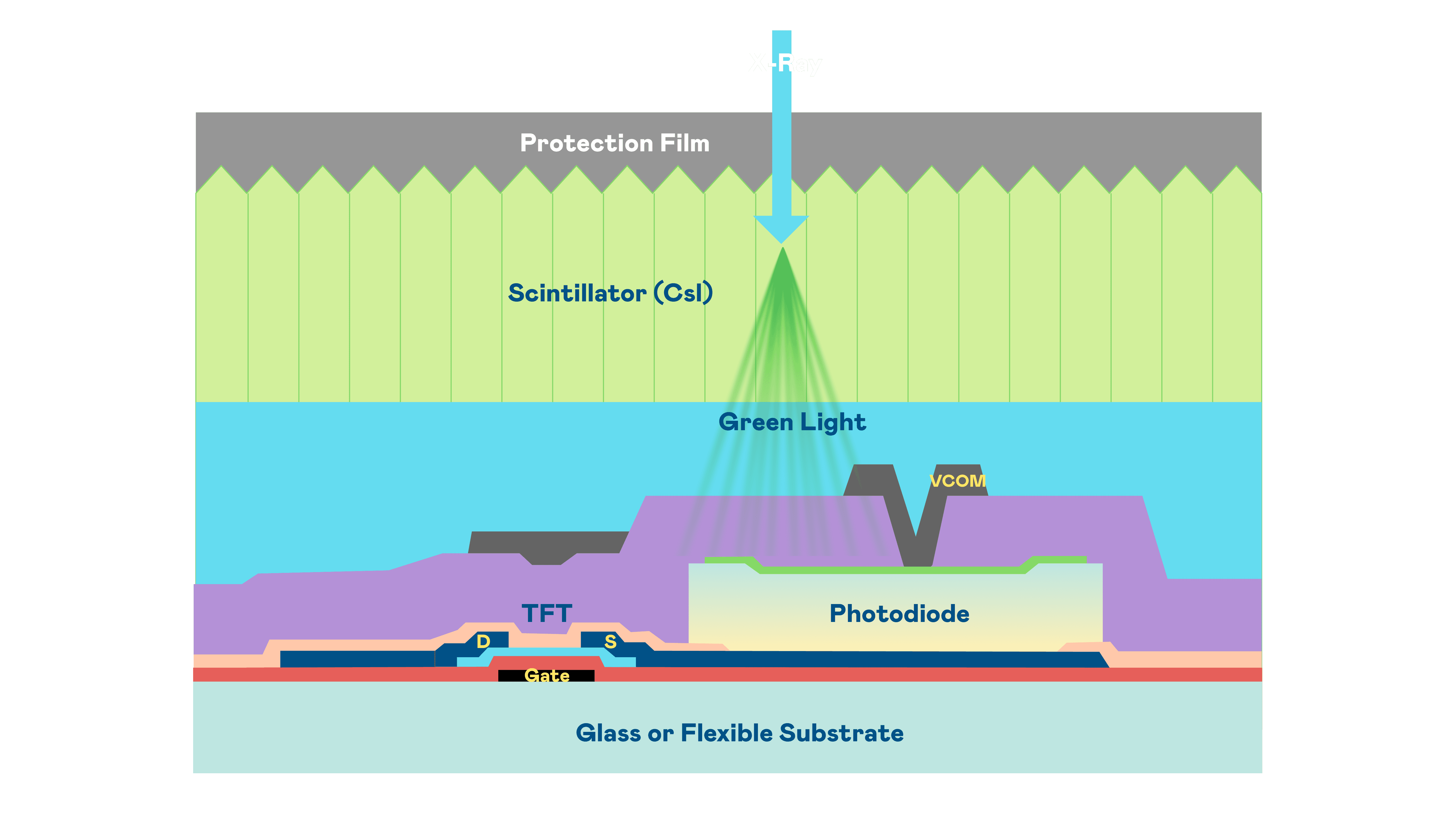 william威廉中文官网的X光影像感测阵列使用薄膜电晶体 (TFT) 作为每个像素的读取开关,,,搭配光电二极体(Photodiode)的光电转换元件,,,用以感测X光影像讯号。。。。